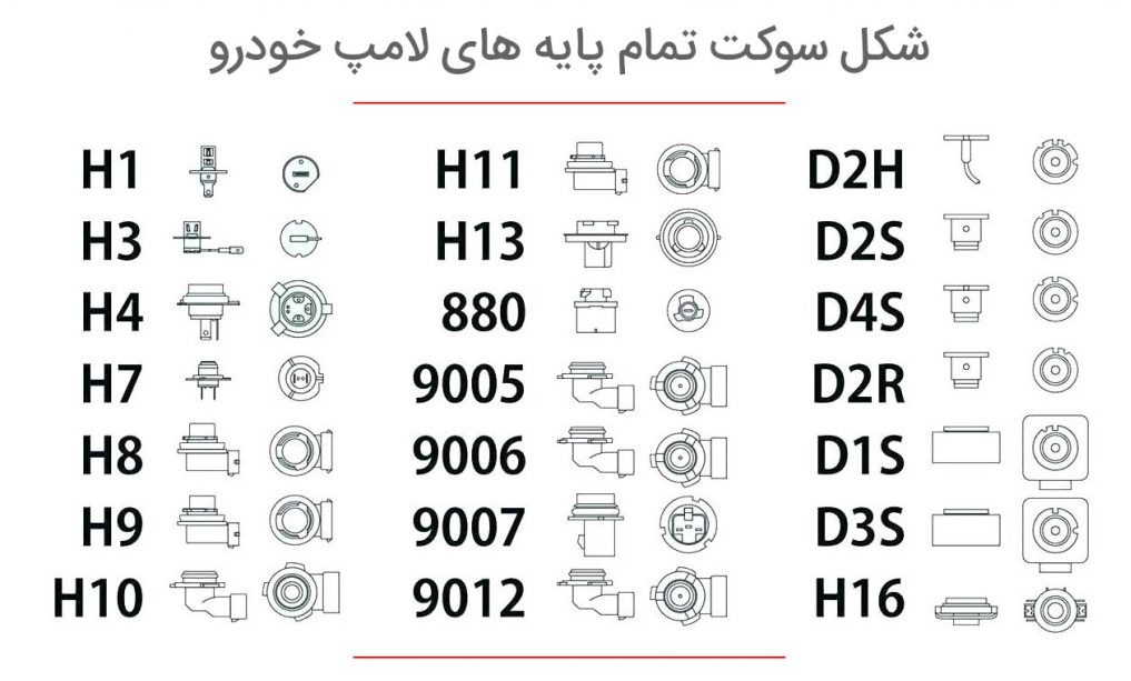 شناخت دقیق نوع پایه (Socket Type) یک پیش‌نیاز اساسی برای هرگونه تعویض یا ارتقاء سیستم روشنایی است. در اینجا مهم‌ترین و رایج‌ترین پایه‌ها در بازار خودروهای داخلی و وارداتی تشریح شده‌اند: